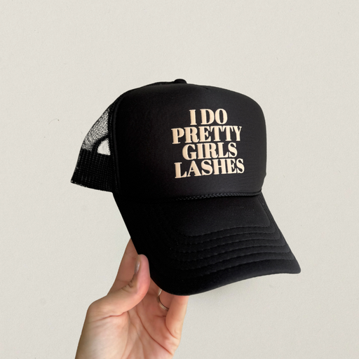 You can never have enough EBL Lash Artist Merch! Top off your lash artist look with our trendy black trucker hat, featuring an off-white puff paint...