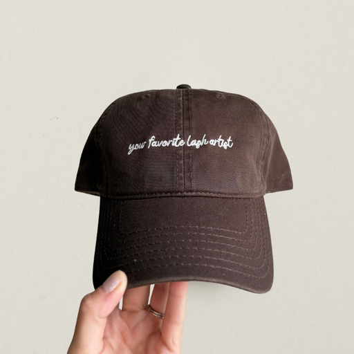 You can never have enough EBL Lash Artist Merch! Top off your lash artist look with our with our brown ball cap, embroidered in crisp white with “y...